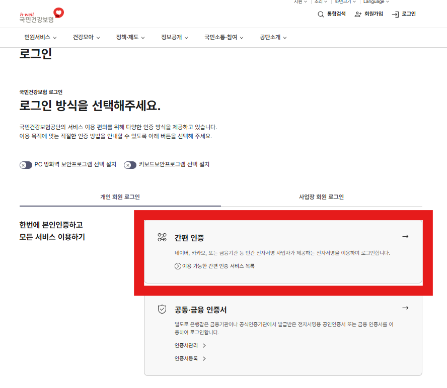 - 국민건강보험공단 홈페이지 접속 (https://www.nhis.or.kr)